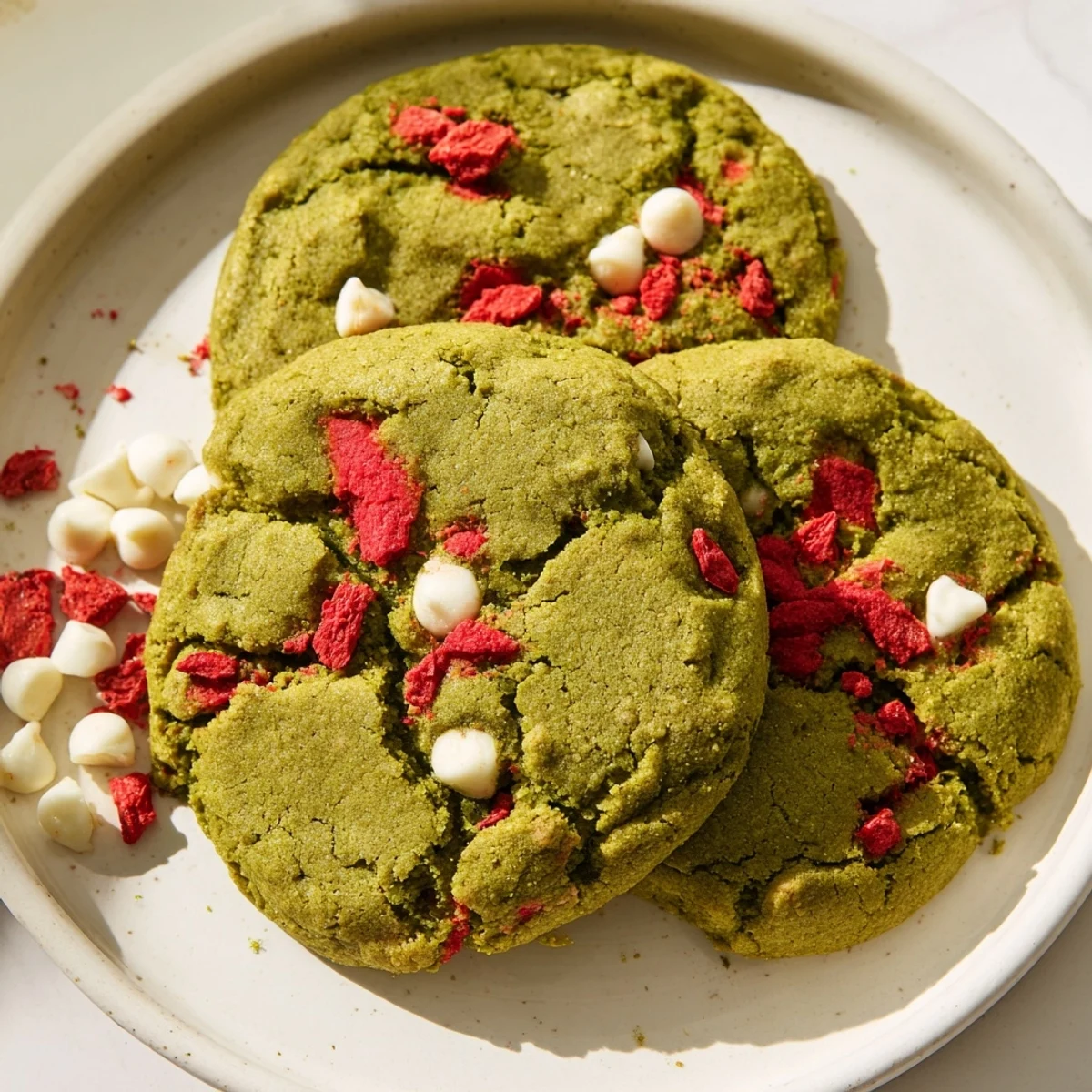Last summer, my sister sent me a bag of culinary matcha from her trip to Kyoto, challenging me to create something beyond the usual lattés. I'd been experimenting with freeze-dried strawberries in my morning oatmeal and loved how their concentrated sweetness balanced earthy flavors. One rainy afternoon, I threw them together in a basic cookie dough, and the kitchen filled with this incredible grassy, floral aroma that made my roommate wander in from her room. That first batch disappeared before they even cooled completely.